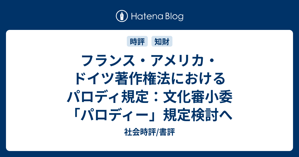 フランス アメリカ ドイツ著作権法におけるパロディ規定 文化審小委 パロディー 規定検討へ 社会時評 書評